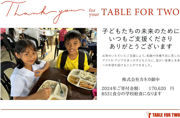 カネカでは、2010年からTABLE FOR TWO(TFT)活動に参画しています。
