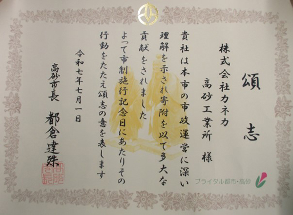 - 地域の雇用促進に貢献したとして、感謝状を授受。